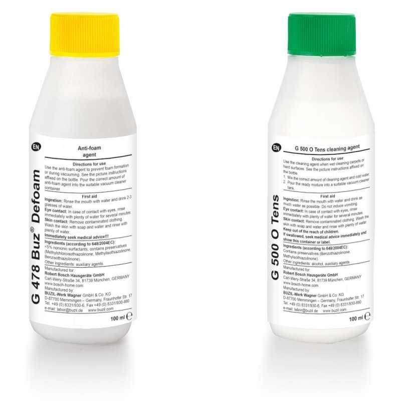 Описание: Моющее средство: обеспечивает эффективную очистку ковров и обивки с помощью пылесосов Bosch AquaWash & Clean. Пеногаситель для предотвращения роспространения пены