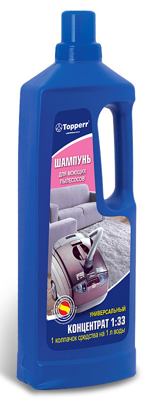 Ковер: тщательно пропылесосьте ковер. Разбавьте шампунь теплой водой – 1 колпачок средства на 1 л воды, залейте в дозатор согласно инструкции Вашего пылесоса. Обработайте загрязненную поверхность, дайте просохнуть и далее пропылесосьте в режиме сухой уборки.