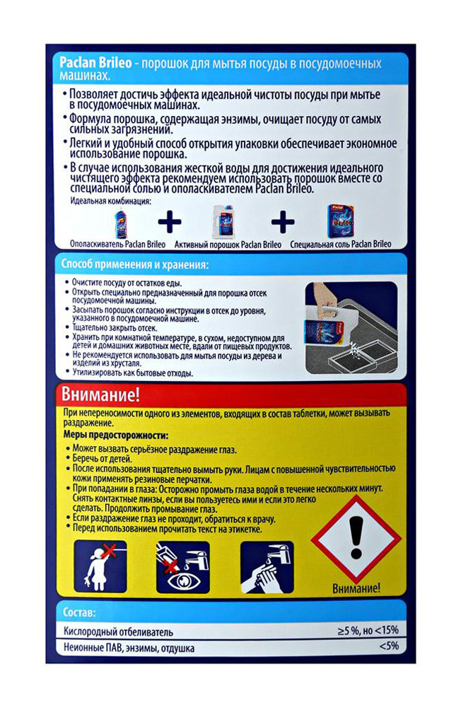 Порошок Paclan 1кг (419130) для посудомоечных машин