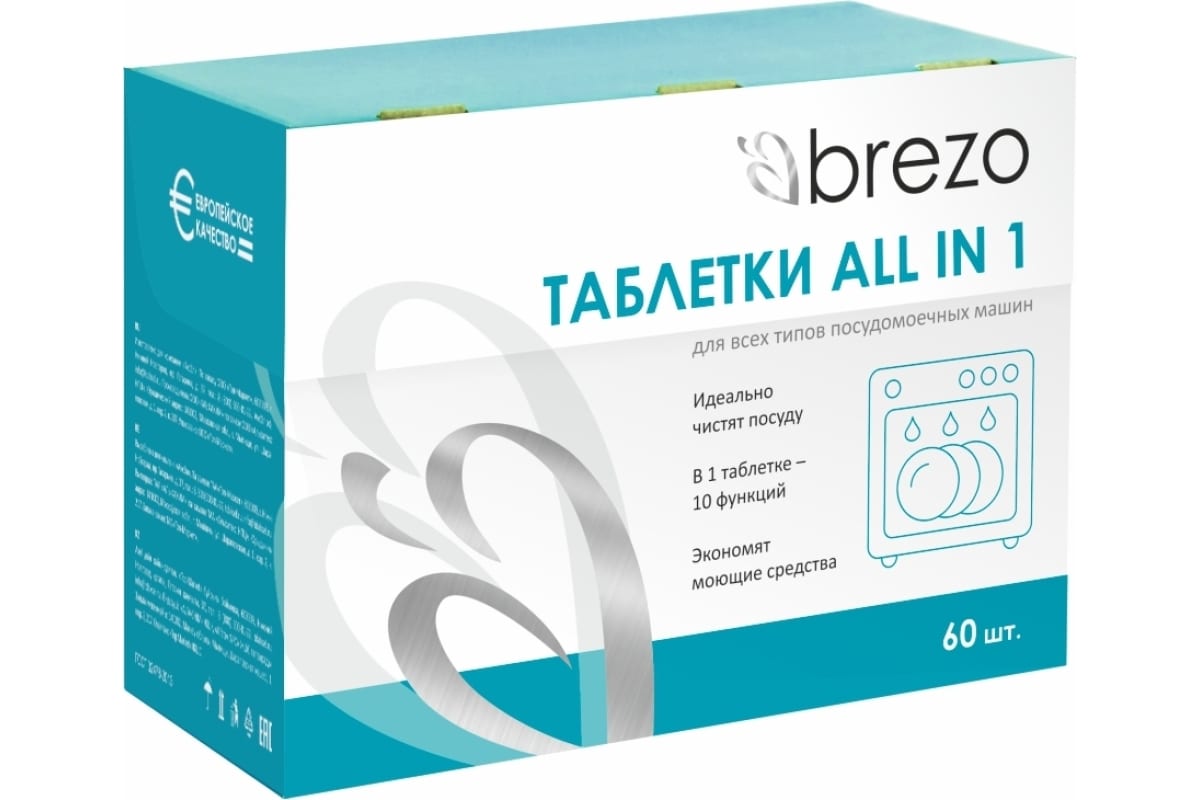 Таблетки для посудомоечной машины BREZO ALL IN 1 97016 в коробке, содержит 60 таблеток.
