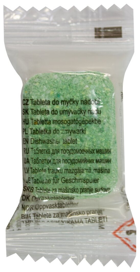 СПОСОБ ПРИМЕНЕНИЯ: 1 таблетка рассчитана на 1 применение. Снимите с таблетки защитную пленку. Положите таблетку в отсек для моющих средств. Закройте дверцу, запустите программу. В случае неполного растворения таблетки во время предыдущих моек или при установке короткого цикла поместите таблетку на дно посудомоечной машины.