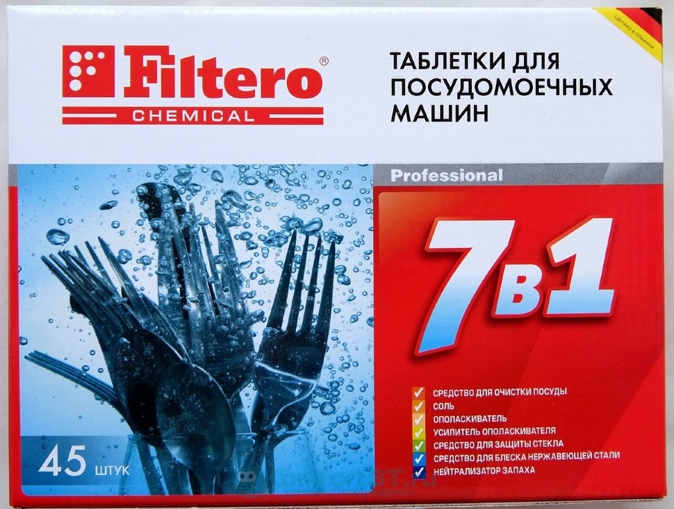 Описание Таблетки для посудомоечных машин Filtero 7 в 1 изготовлены по новым технологиям и рекомендуются для использования в посудомоечных машинах ведущих производителей. Одной таблетки достаточно для полного цикла мытья и ополаскивания посуды.