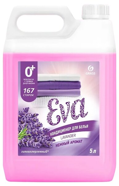 Кондиционер для белья серии Eva с ароматом лаванды идеально подходит для машинной и ручной стирки всех видов тканей. Придает белью мягкость и приятный аромат. Обладает антистатическим эффектом, облегчает глажение после стирки.