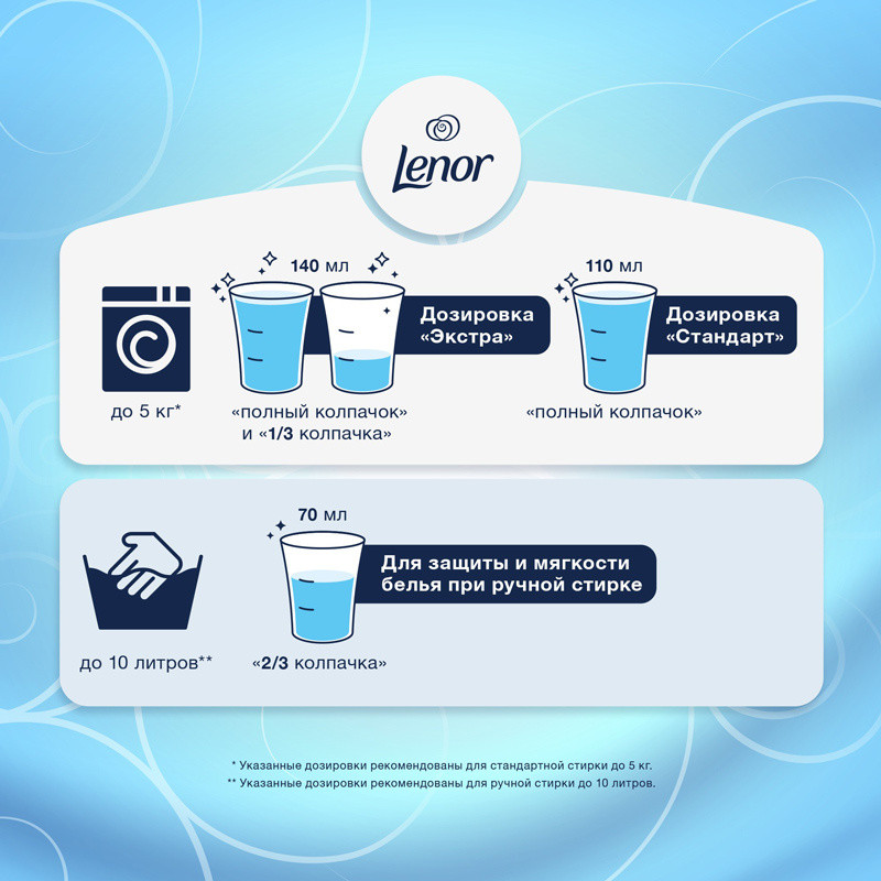 Для полоскания белья и других изделий из различных тканей во всех видах стиральных машин и при ручной стирке. Придает тканям мягкость и свежий аромат, значительно облегчает глажение, обладает антистатическим эффектом. Подходит для всех видов тканей.