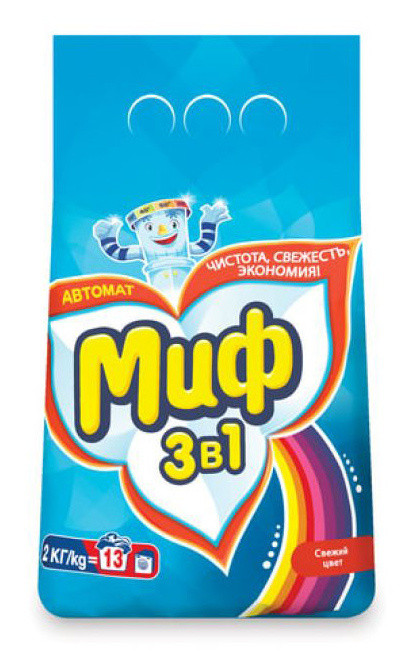 Порошок для стирки Миф 3 в 1 Свежий цвет автомат 2кг