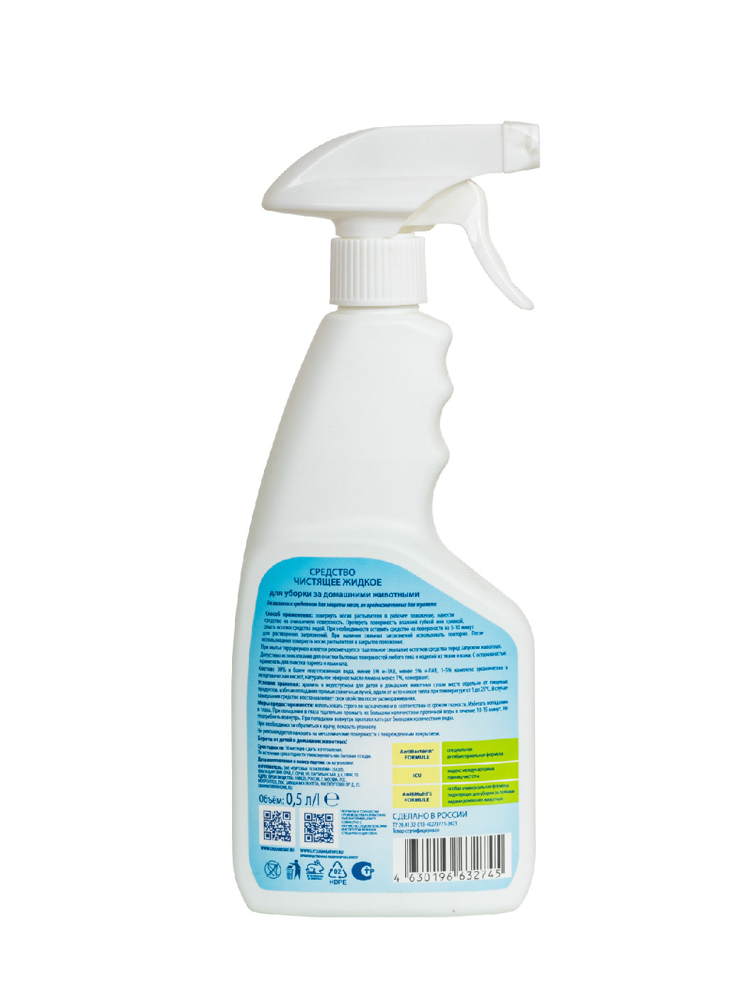 Антибактериальный спрей для уборки за домашними животными с натуральным эфирным маслом лимона. Не является средством для защиты мест, не предназначенных для туалета.