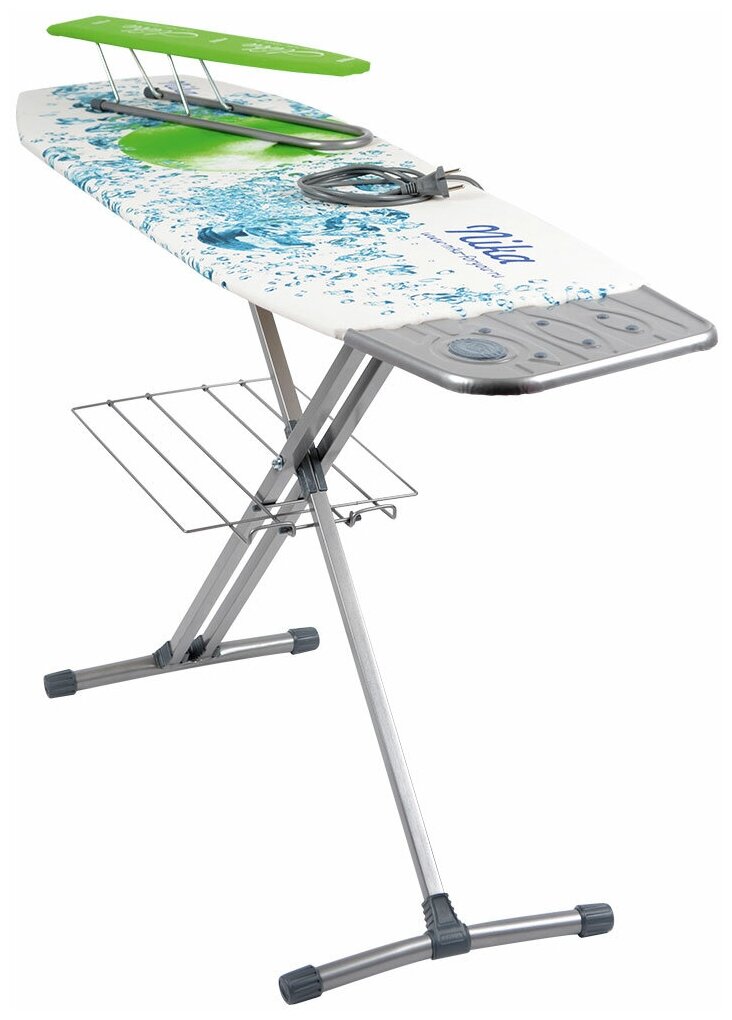 подставка для утюга, гладильный рукав, встроенная розетка для утюга, полка для белья, удлинитель