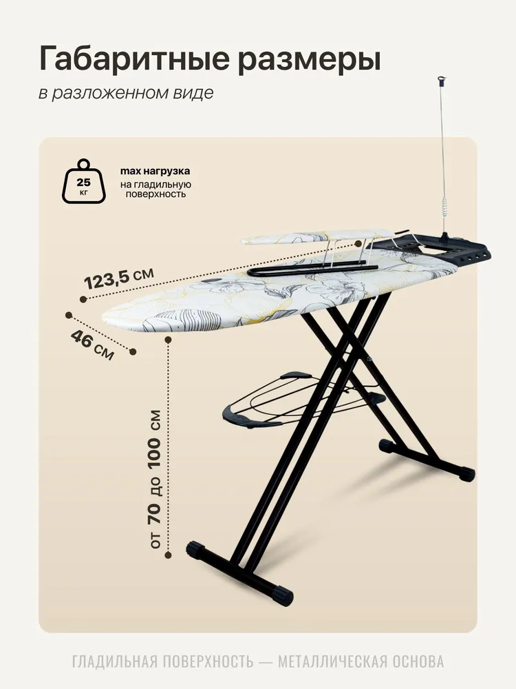 -Максимальная нагрузка на гладильную поверхность - 25 кг