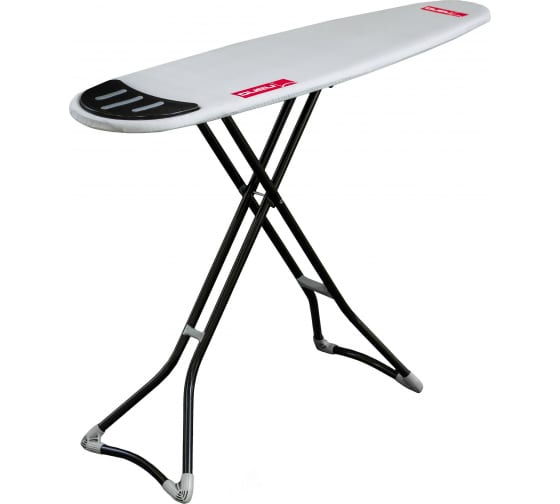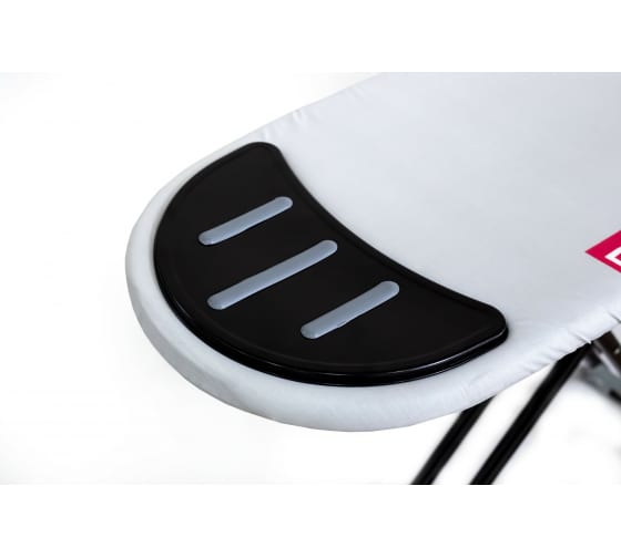 Современный дизайн. Устойчивая конструкция. Моноблочная стальная столешница. Чехол с антипригарным покрытием. Подставка под утюг. Регулировка высоты 78-98 см. Для обеспечения устойчивости и для препятствия образованию царапин на полу ножки изделия снабжены противоскользящими вставками.