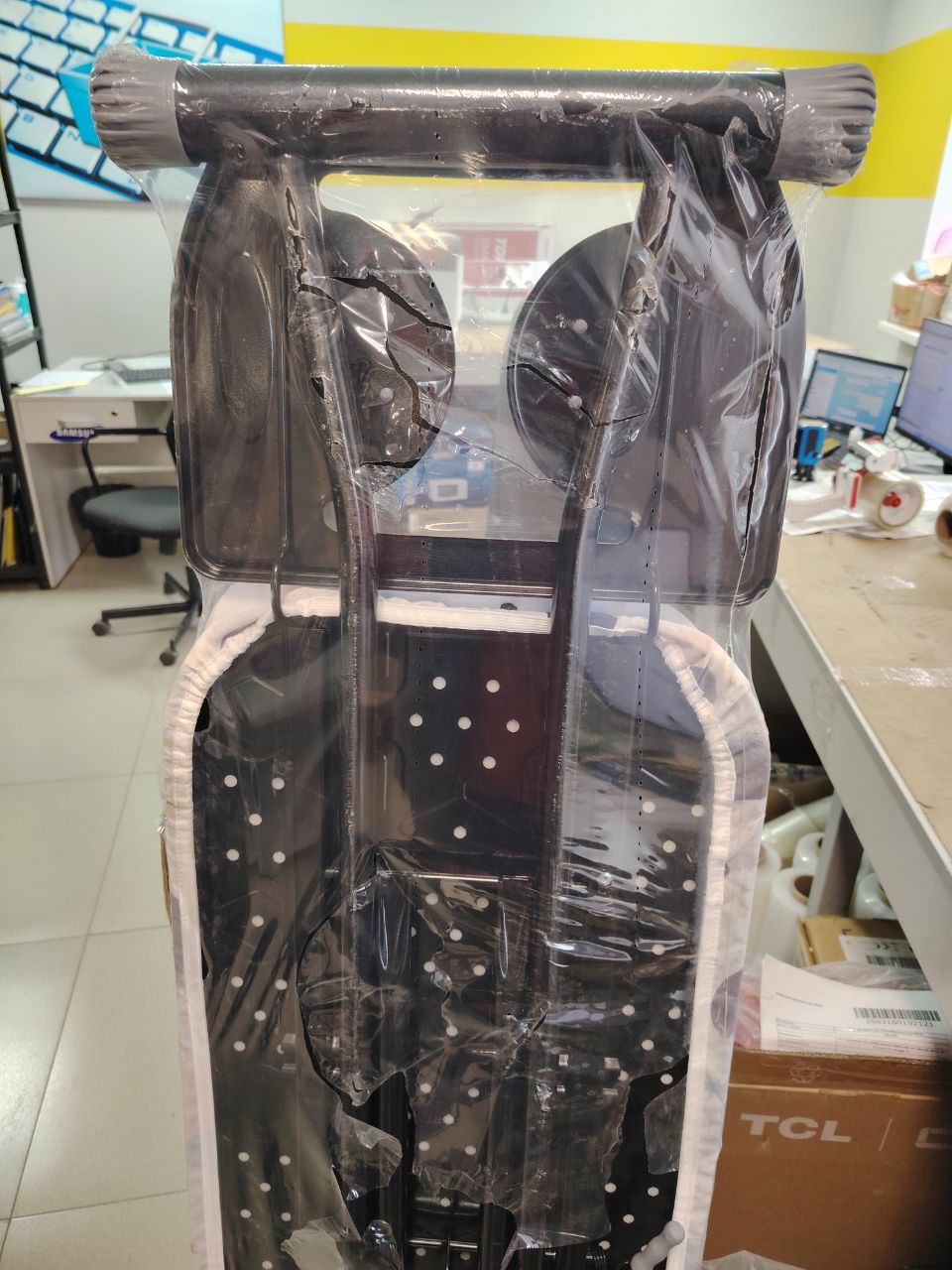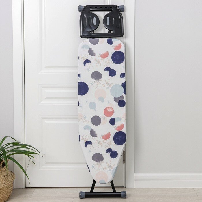 Ножки с накладками препятствуют скольжению и образованию царапин на полу. Всё это позволит улучшить процесс глажки и обеспечить максимальный комфорт. Гладильная доска легко складывается и не занимает много места.Материал чехла - х/б, с подкладкой на поролоне.