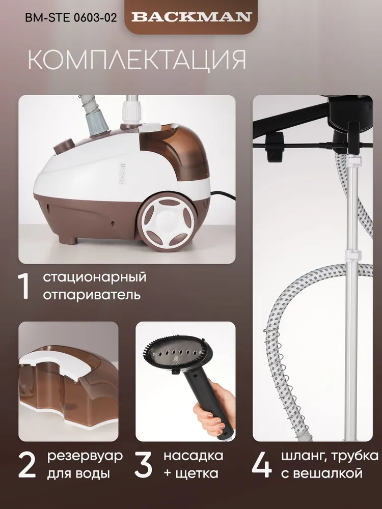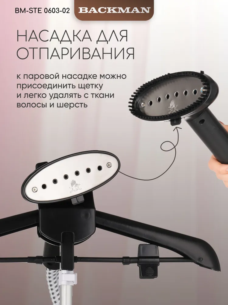 Особенности утюга, отпаривателя: Вертикальное отпаривание, Горизонтальное отпаривание, Дозалив воды, Защита от накипи, Насадка для деликатных тканей, Противокапельная система