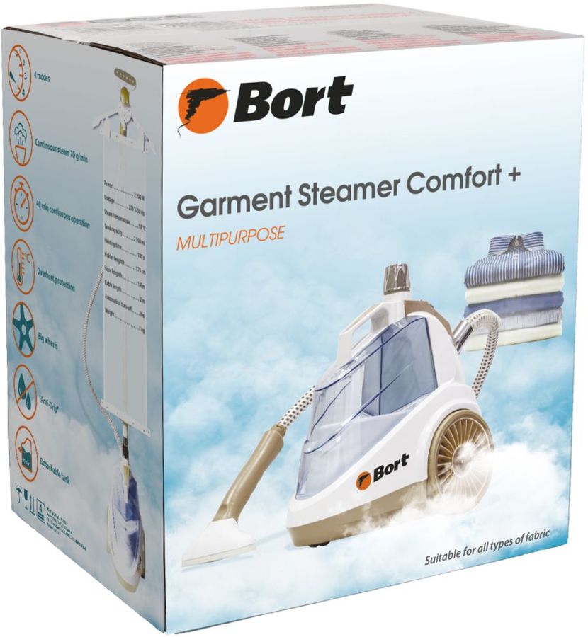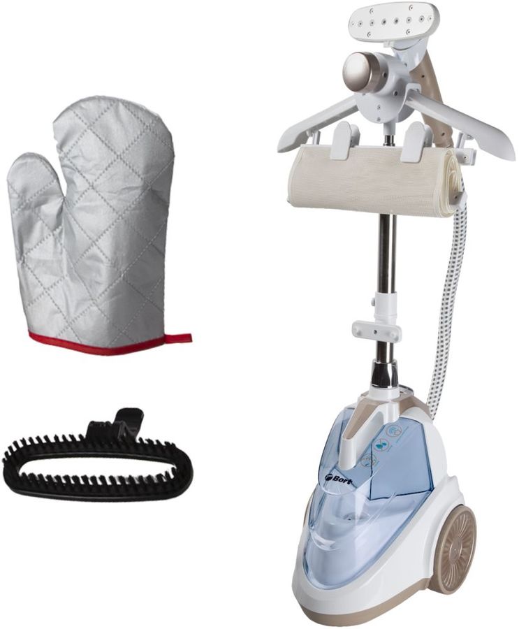 Особенности: В комплекте: Складная вешалка, Щетка-зажим для стрелок на брюках, Вертикальная гладильная доска, Стойка телескопическая, Держатель парового утюжка, Паровой шланг с утюжком, Термостойкая защитная рукавица