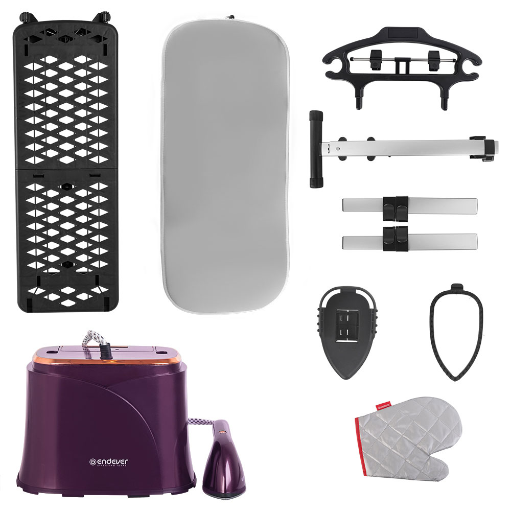 Предназначен для пропаривания одежды, подушек, матрасов и одеял пар, проникая насквозь, уничтожает пылевых клещей, негативную микрофлору и запахи, Эффективное отпаривание, деликатный уход, удобное управление, Быстрый нагрев, интенсивная подача пара, Длительное время работы, Подошва утюжка из керамики для более легкого процесса отпаривания и сухой глажки, Полноценная гладильная доска с тремя положениями установки, Устойчивая двойная телескопическая стойка, 3 уровня регулировки мощности пара, Съемный резервуар позволяет контролировать уровень воды, Долив воды во время работы, Индикатор готовности работы, Защита при отсутствии воды, Защита от перегрева