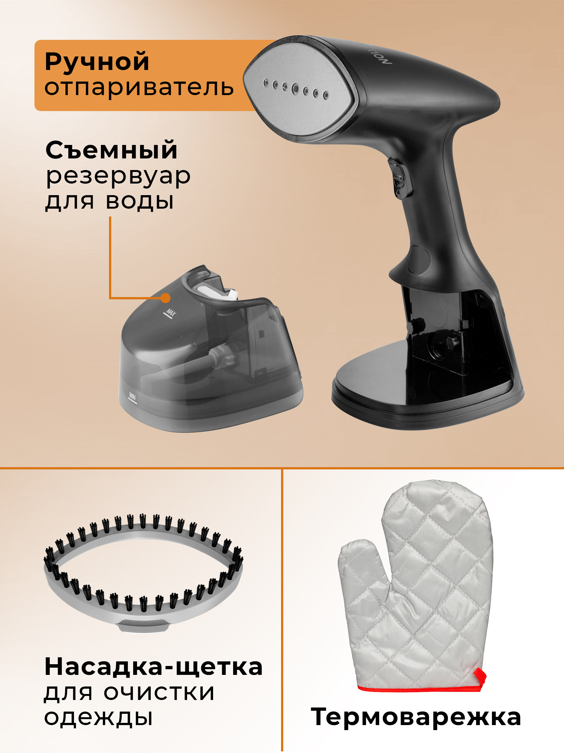 В комплекте предусмотрена дополнительная насадка-щетка для очистки одежды, а чтобы предотвратить ожог есть термоварежка.
