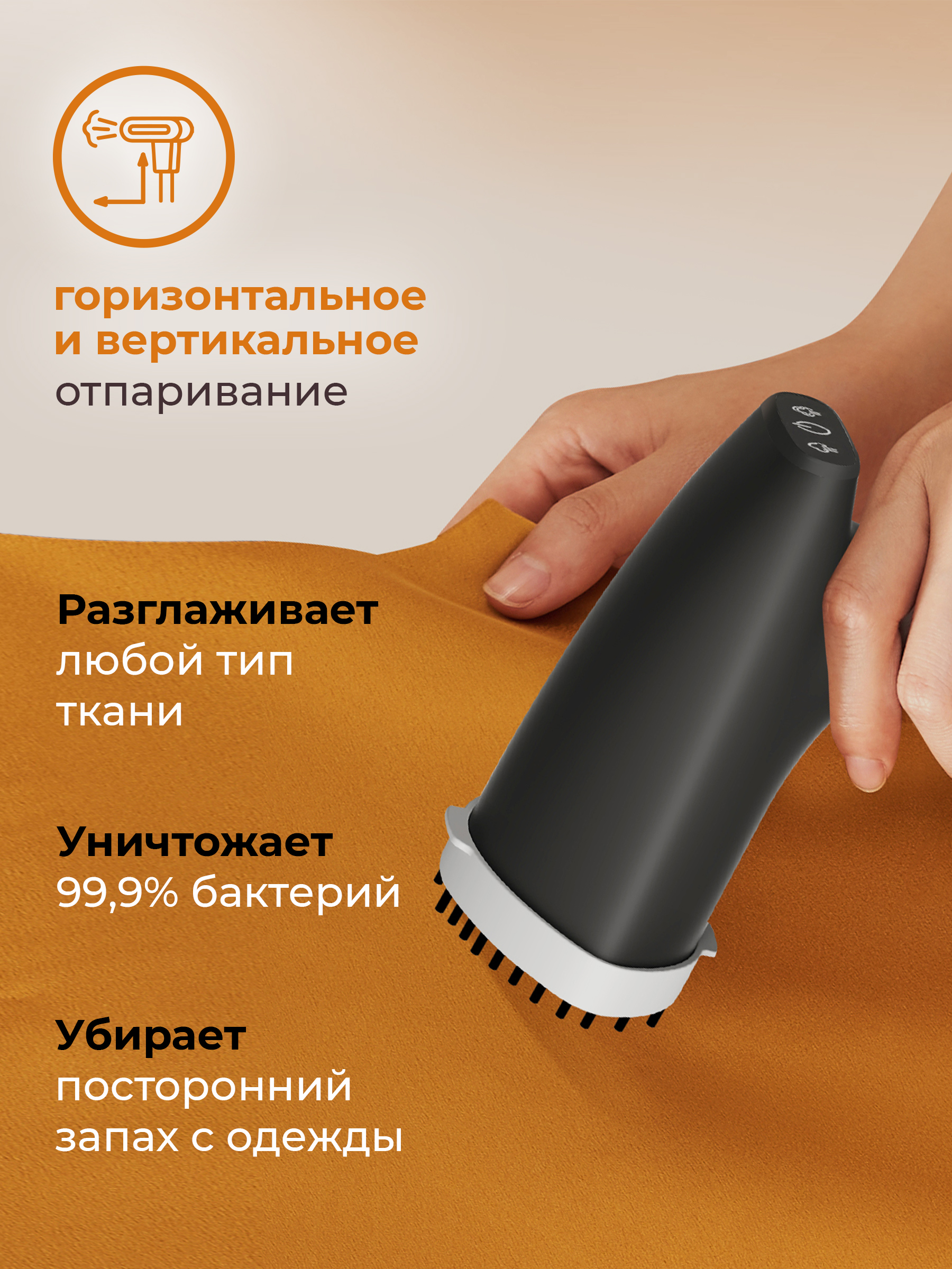 Небольшие габариты и вес позволяют использовать отпариватель и в домашних условиях, и брать в путешествия. Благодаря маленьким размерам, не будет никаких проблем с хранением, ручной отпариватель – отличная альтернатива утюгам и паровым станциям.
