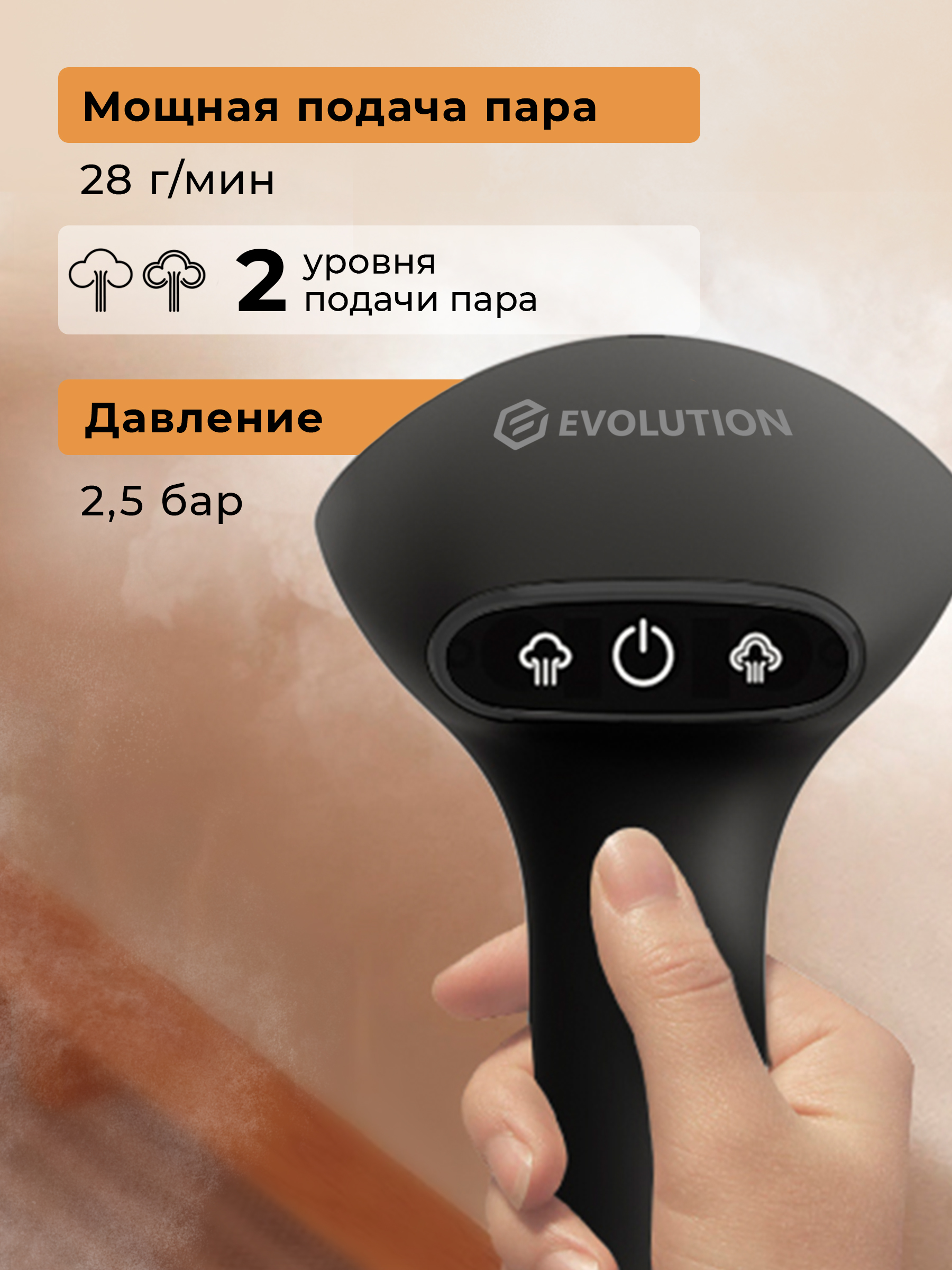 Компактный вертикальный парогенератор EVOLUTION HANDY 2 подходит для комплексного ухода за изделиями из любых типов тканей. Прибор может разглаживать вещи как в вертикальном положении, так и в горизонтальном. Пар уничтожает 99,9% бактерий, хорошо убирает посторонний запах с одежды.