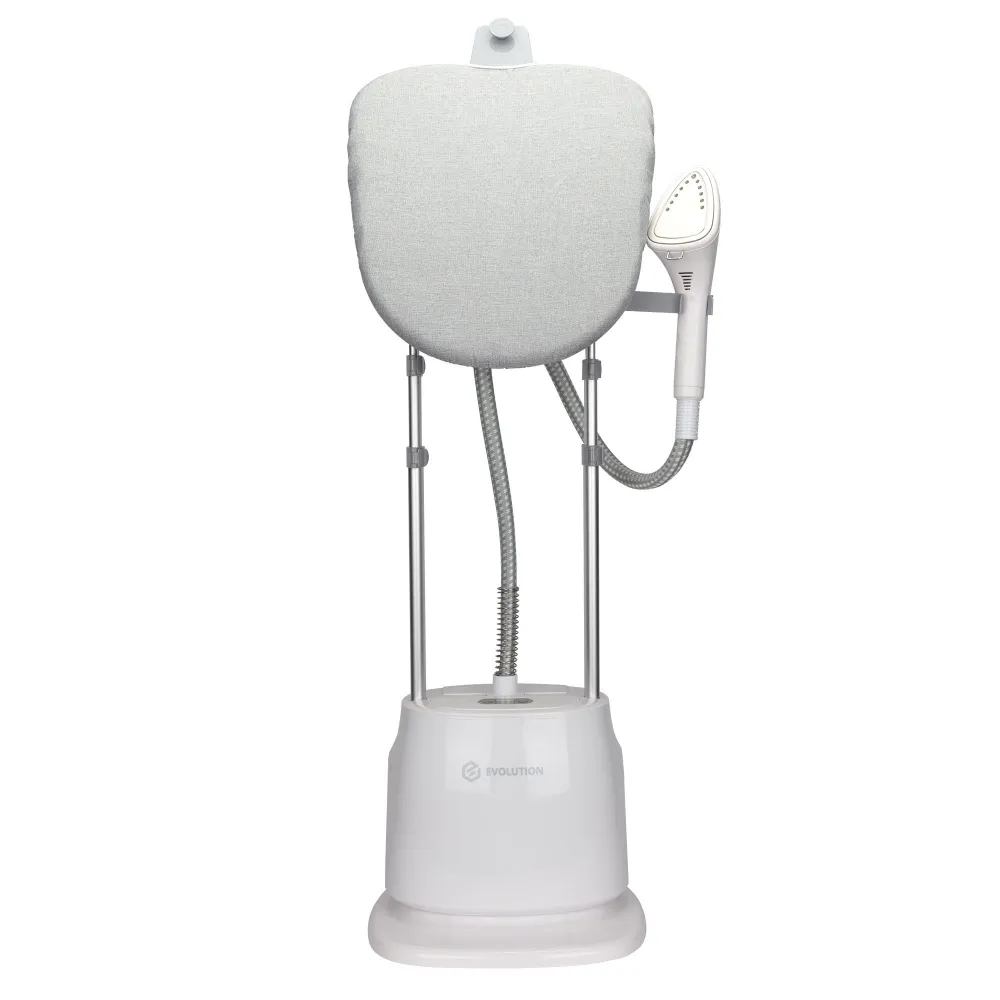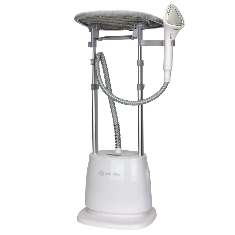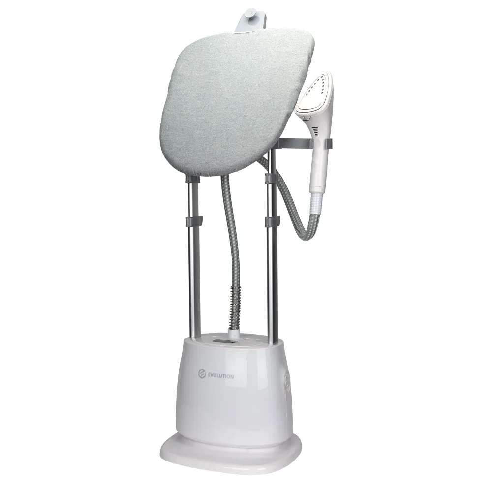 Отпариватель Steam Station 1 предназначен для комплексного ухода за изделиями из любых типов тканей и меха. С помощью паровой станции EVOLUTION Вы сможете: деликатно и быстро отпарить белье или одежду; восстановить внешний вид ткани; осуществить плановый уход за любыми меховыми изделиями; произвести глубокую дезинфекцию одежды, мягкой мебели, ковров, мягких игрушек. Это высокоэффективный и безопасный для окружающей среды и человека способ уничтожения вредоносных микроорганизмов, аллергенов и патогенных бактерий. У модели 5 режимов подачи пара, паровой удар до 50 г/мин. Емкость резервуара для воды: 1500 мл. Конструкцией паровой станции предусмотрена гладильная доска, которая еще больше упрощает и ускоряет процесс глажки. Возможно вертикальное и горизонтальное отпаривание. Гладильная доска оснащена механизмом наклона и имеет фиксированные положения 45°, 90° и 180°.