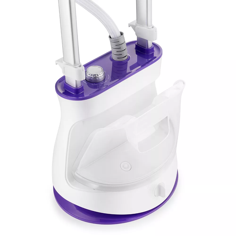 Комплектация 1. Отпариватель с паровым шлангом и утюжком — 1 шт. 2. Резервуар для воды — 1 шт. 3. Телескопическая стойка — 2 шт. 4. Вешалка с держателем утюжка — 1 шт. 5. Ворсовая щетка — 1 шт. 6. Прищепка для одежды — 2 шт. 7. Защитная варежка — 1 шт. 8. Руководство по эксплуатации — 1 шт. 9. Коллекционный магнит — 1 шт.* *опционально