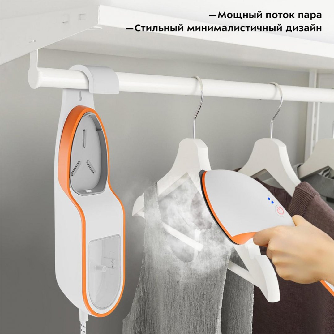 В базе предусмотрено отверстие для настенного крепления, а также крепление на штангу для одежды. 2 в 1: утюг и отпариватель.