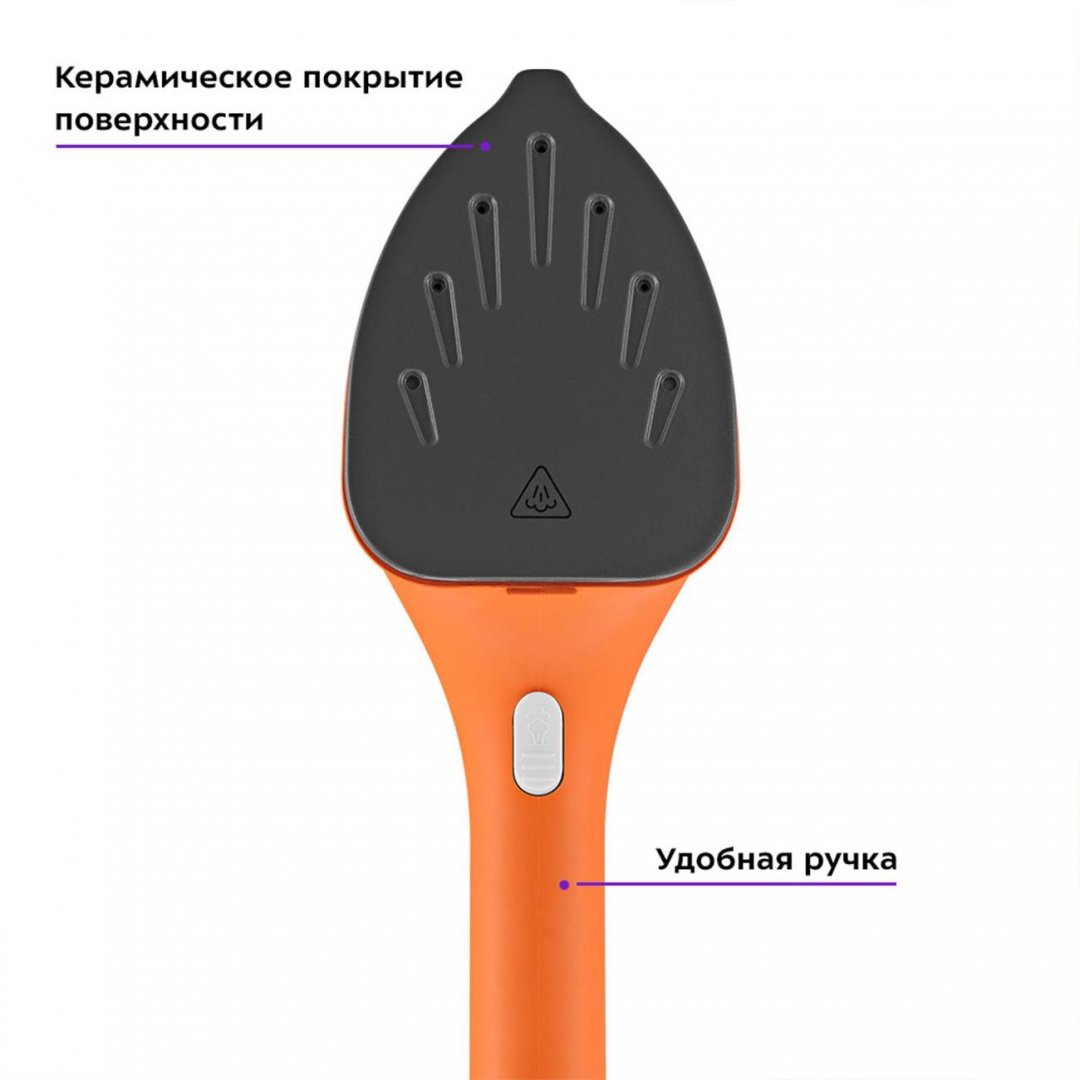 Ручной отпариватель Kitfort КТ-9129-2 (белый/оранжевый) оборудован пластиковым корпусом и съемной емкостью для воды объемом 0,33 л. На ручке расположен регулятор подачи пара, предельный показатель парового удара составляет 30 г/мин. Для полного разогрева воды в резервуаре требуется 45 сек. Устройство оснащено индикаторами включения и готовности к работе. Конструкция включает в себя насадку для шерстяных тканей. Благодаря компактным размерам устройство не занимает много места и его можно брать с собой в поездки.