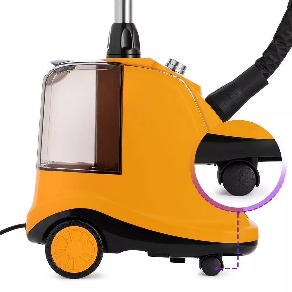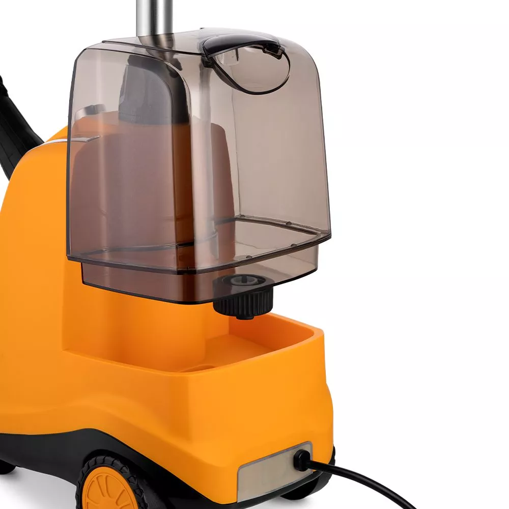 В передней части корпуса установлены поворотные колёсики. Благодаря этому отпариватель Kitfort КТ-9159 становится более манёвренный и поворотливый, и его намного легче перемещать по полу.