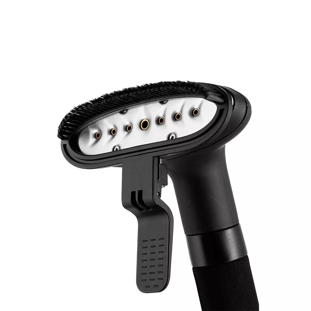 При необходимости, вы можете прикрепить ворсовую насадку-зажим. Ворсовая щётка отлично справится с задачей очистки тканей, мягкой мебели и ворса от шерсти и волос. Зажим, в свою очередь, пригодится для отпаривания брюк.