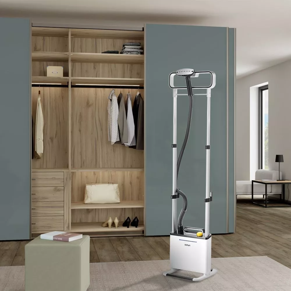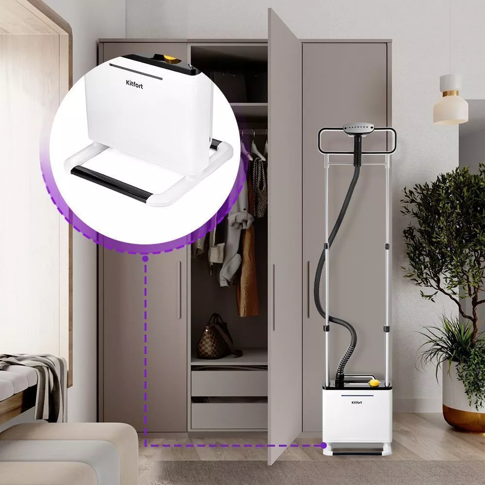 Вертикальный отпариватель Kitfort КТ-9171 позволяет быстро прогладить любые вещи и изделия из текстиля. Помимо возможности отпаривания данный прибор обрабатывает вещи мощной струёй горячего пара, что обеспечивает чистку и дезинфекцию.