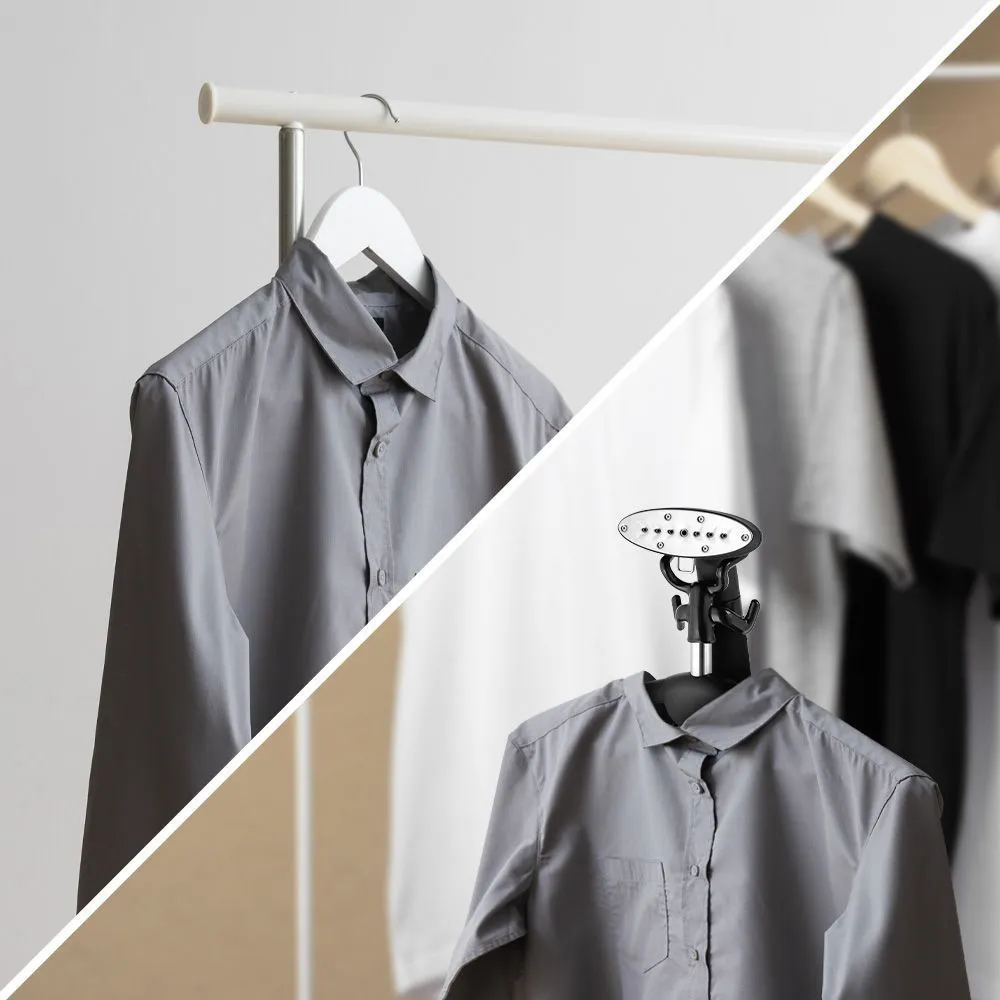 На вешалку отпаривателя можно повесить рубашки, брюки и другую одежду. Также одежду можно подвесить на крючок отпаривателя, чтобы не перевешивать её с вешалок, на которых она хранится в шкафу.