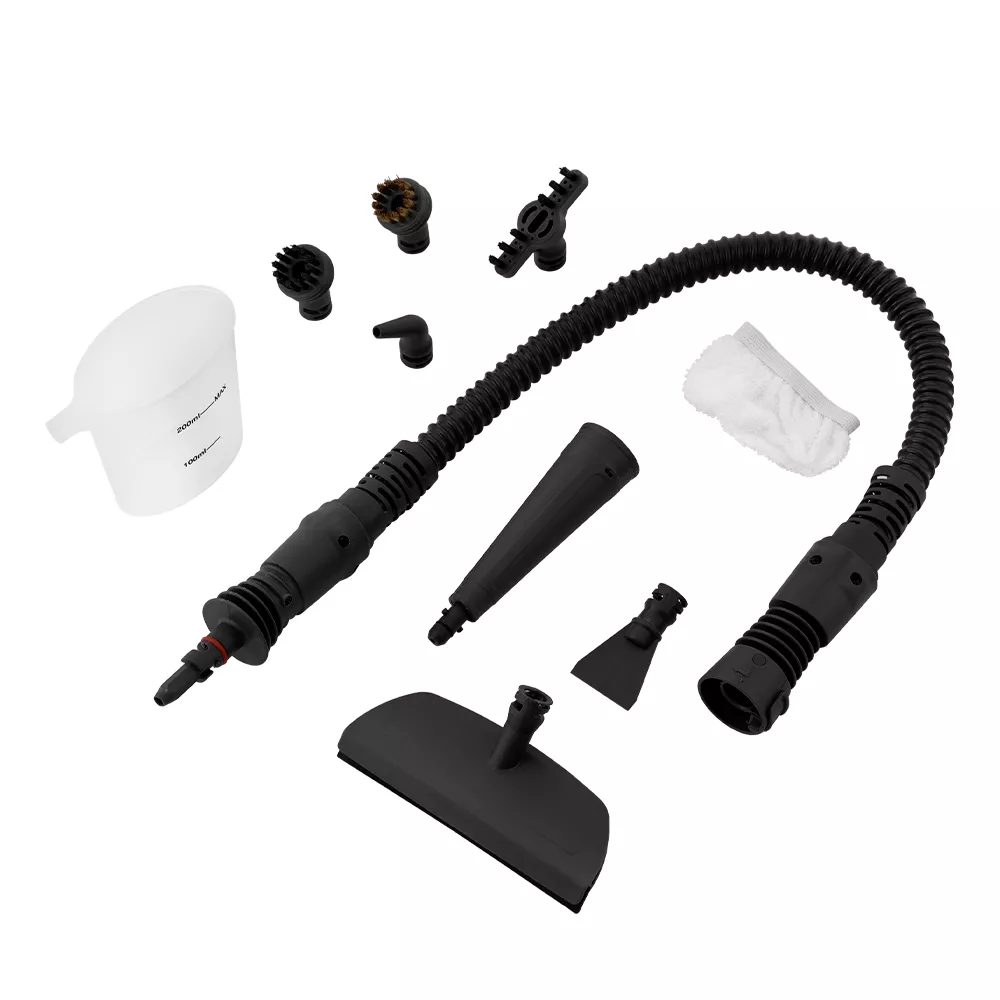 Пароочиститель позволит эффективно справляться с очисткой различных поверхностей. Воздействие мощного потока пара помогает устранять стойкие загрязнения и проводить дезинфекцию. Прибор готов к использованию через несколько минут после включения и оснащен вместительным резервуаром для воды на 300 мл, что обеспечивает около 10 минут непрерывной работы. Пароочиститель поставляется в наборе с комплектом насадок для отпаривания тканей и чистки, а также мерным стаканом. Среди других особенностей отмечаются емкость для моющего средства на 150 мл и сетевой кабель длиной 5 м.