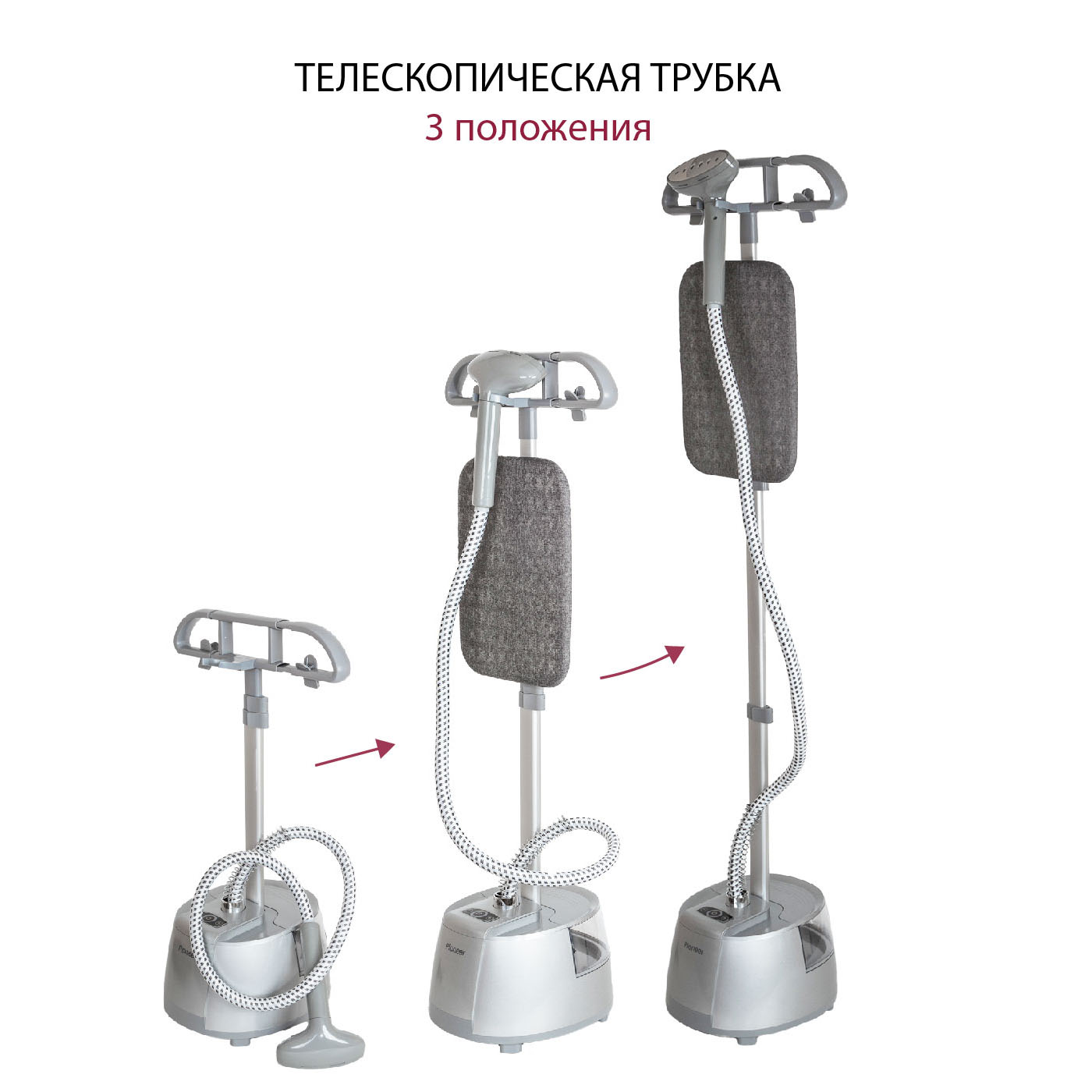 Комплектация: отпариватель, доска для глажения, гибкий шланг в защитной оболочке, насадка для отпаривания, плечики для одежды с прищепками для брюк и юбок, перчатка, гарантийный талон, инструкция на русском языке