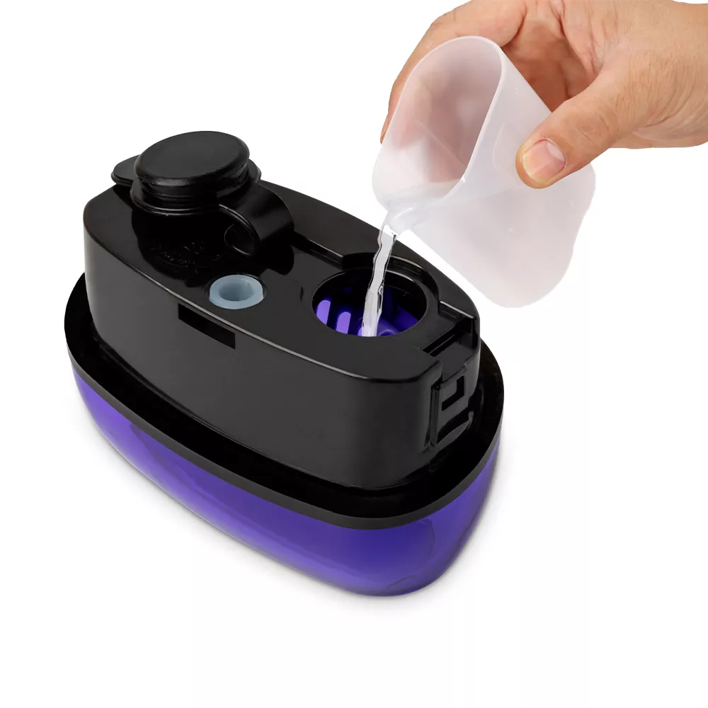 Резервуар для воды ёмкостью 110 мл оборудован специальным отверстием для залива воды внутрь отпаривателя. Оно защищено прорезиненной крышкой, чтобы вода не вытекла при работе отпаривателя.