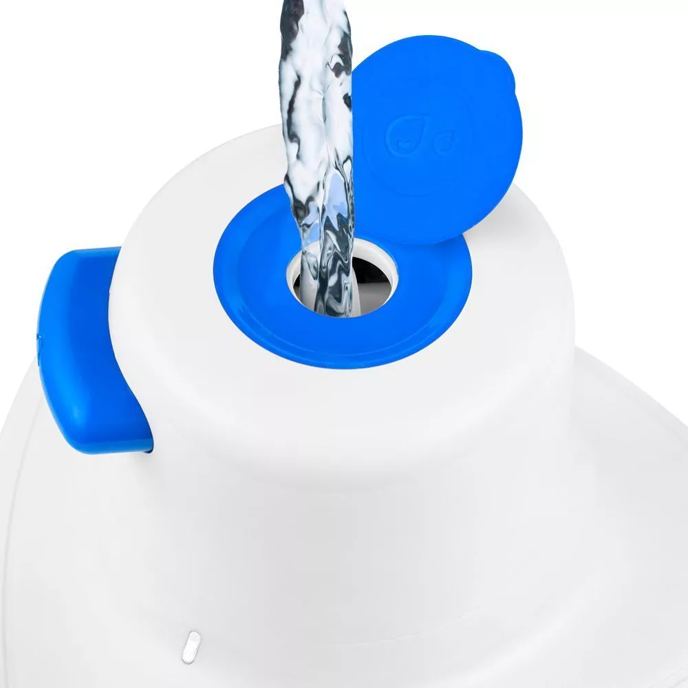 Резервуар для воды ёмкостью 50 мл встроен в корпус отпаривателя. Воду удобно наливать через специальное отверстие, закрываемое герметичной пробкой. Мерный стаканчик поможет отмерить нужное количество воды и удобно залить её в резервуар.