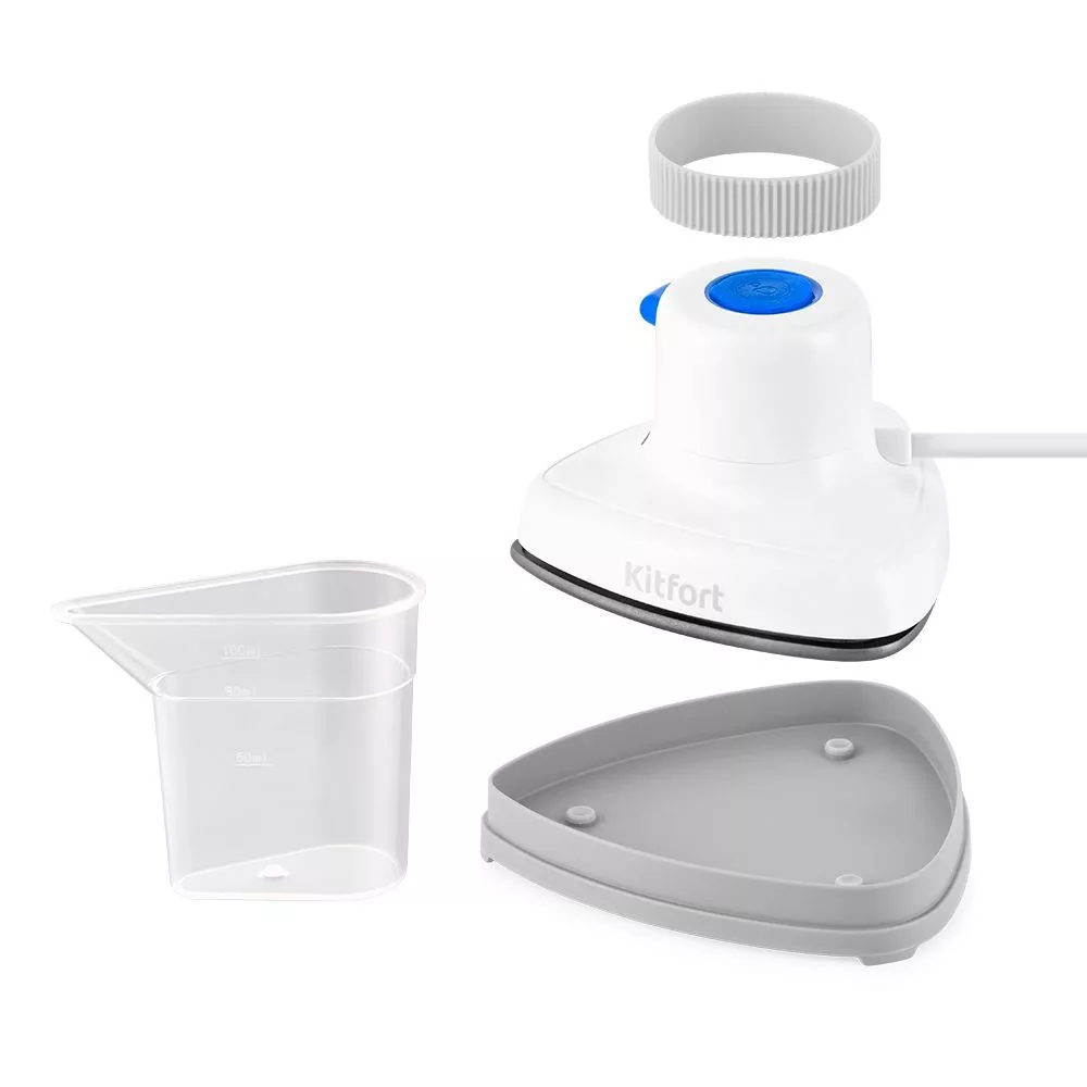 В комплекте идут мерный стаканчик, подставка для хранения прибора и силиконовая вставка, чтобы было комфортно держать отпариватель во время глажки. После использования, прибор удобно оставить на подставке для безопасного остывания рабочей поверхности.
