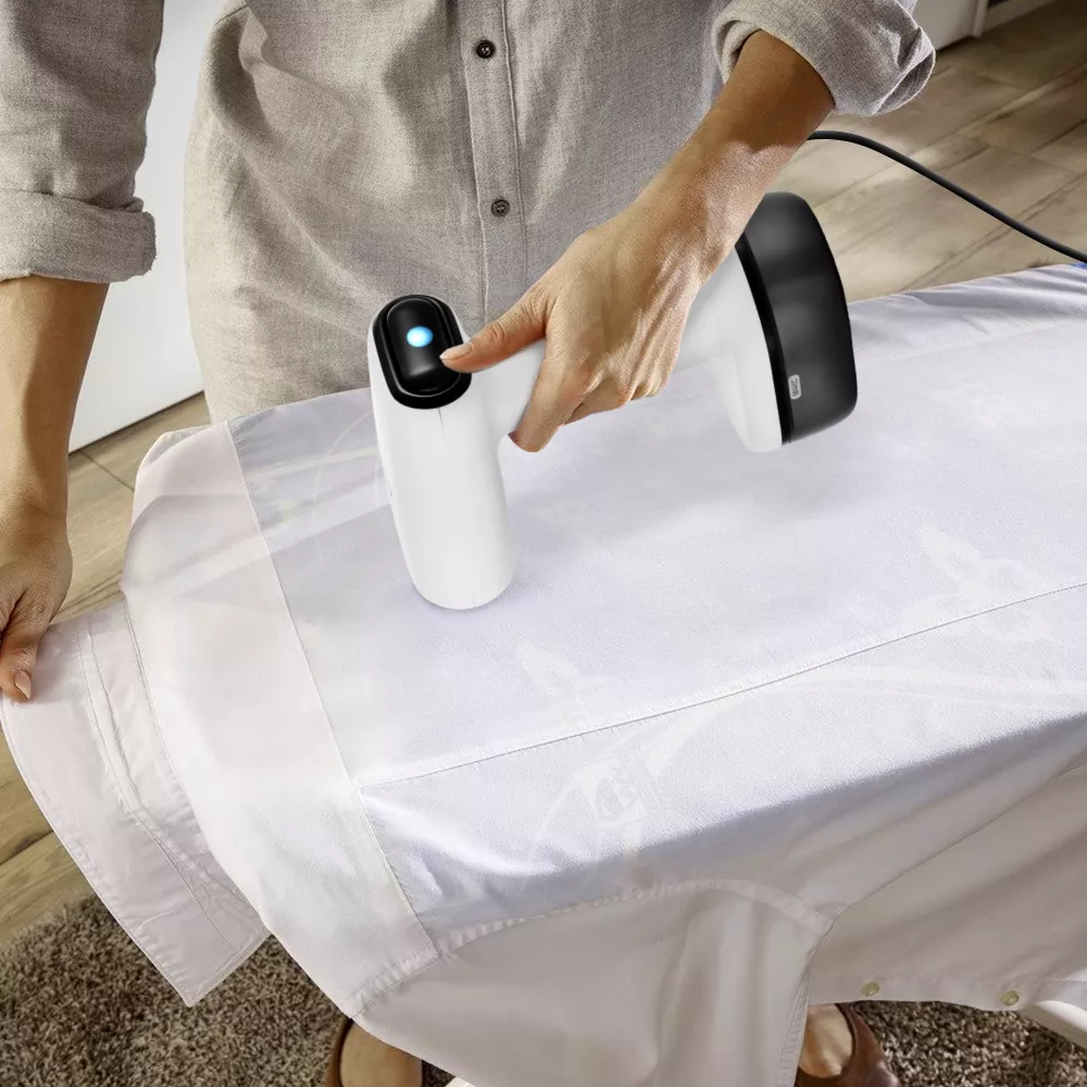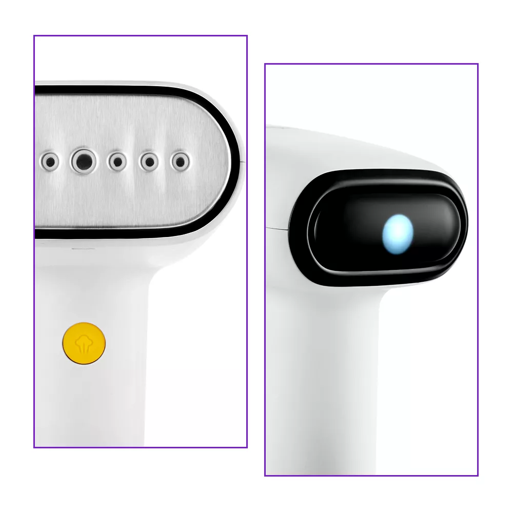 Подача пара включается кнопкой, расположенной с внутренней стороны устройства. Через 35 секунд после включения, вода нагреется и можно начать подачу пара. С помощью световой индикации вы всегда будете знать, когда отпариватель готов к работе!