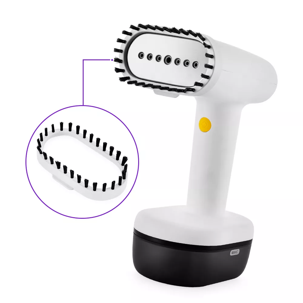 В комплекте идёт ворсовая щётка, которой легко очищать текстиль от шерсти, ворса и волос. Пар снимает у загрязнения электрический заряд, и они легко счищаются ворсовой щёткой.