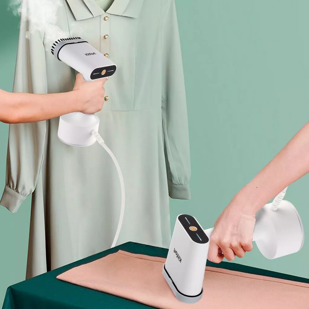 Ручной отпариватель КТ-9152 с мощностью 1500 Вт незаменим для оперативного приведения одежды в порядок, для глажки занавесок, обивки мебели и пр. Вода из резервуара подаётся в бойлер помпой (водяным насосом), что позволяет получать устойчивую подачу пара.