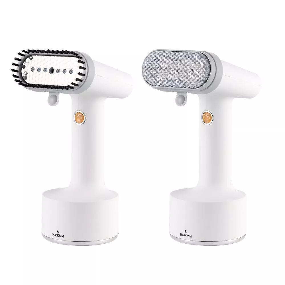 В комплекте с ручным отпаривателем идут 2 насадки. Ворсовая легко чистит загрязнённые поверхности, а также убирает шерсть домашних животных, волосы, ворс. Тканевая насадка необходима при работе с деликатными тканями.