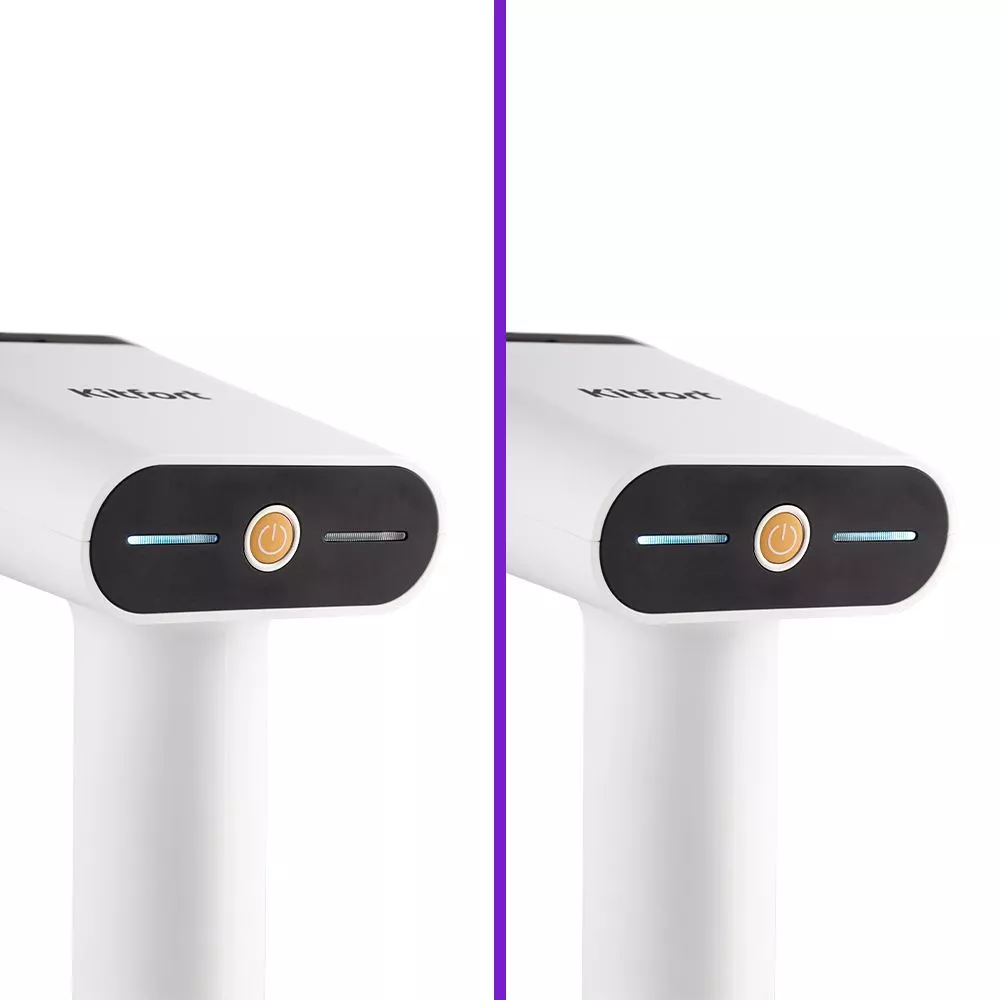 В зависимости от вещи, которую необходимо отпарить, можно выбрать слабую или сильную подачу пара. Для этого необходимо нажать на кнопку «вкл/выкл» и дождаться, когда световая индикация сообщит о готовности отпаривателя к работе.