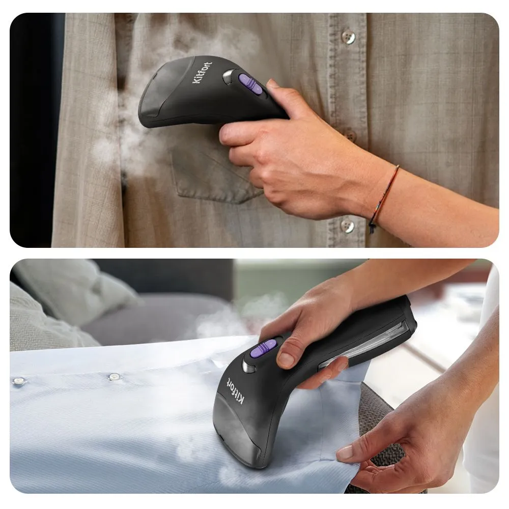 Ручной отпариватель КТ-9199 предназначен для разглаживания изделий из текстиля с помощью потока горячего пара. Ручной отпариватель приведёт в порядок вещи быстро и практически в любом месте без раскладывания гладильной доски.