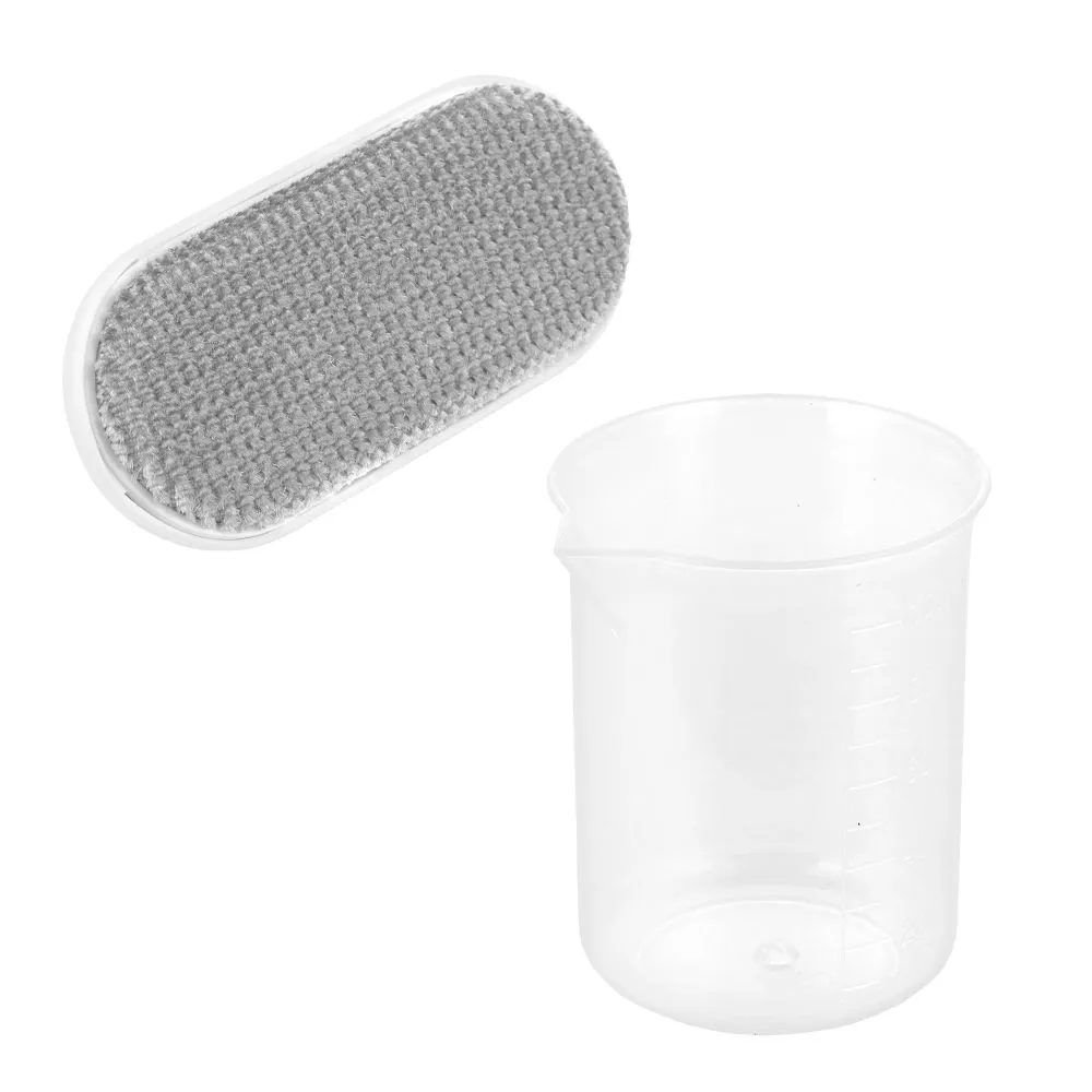 В комплекте к прибору идёт щётка для чистки одежды, которой легко очищать текстиль от шерсти, ворса и волос. Помимо щётки с отпаривателем в комплекте идёт мерный стаканчик для удобного залива воды внутрь.