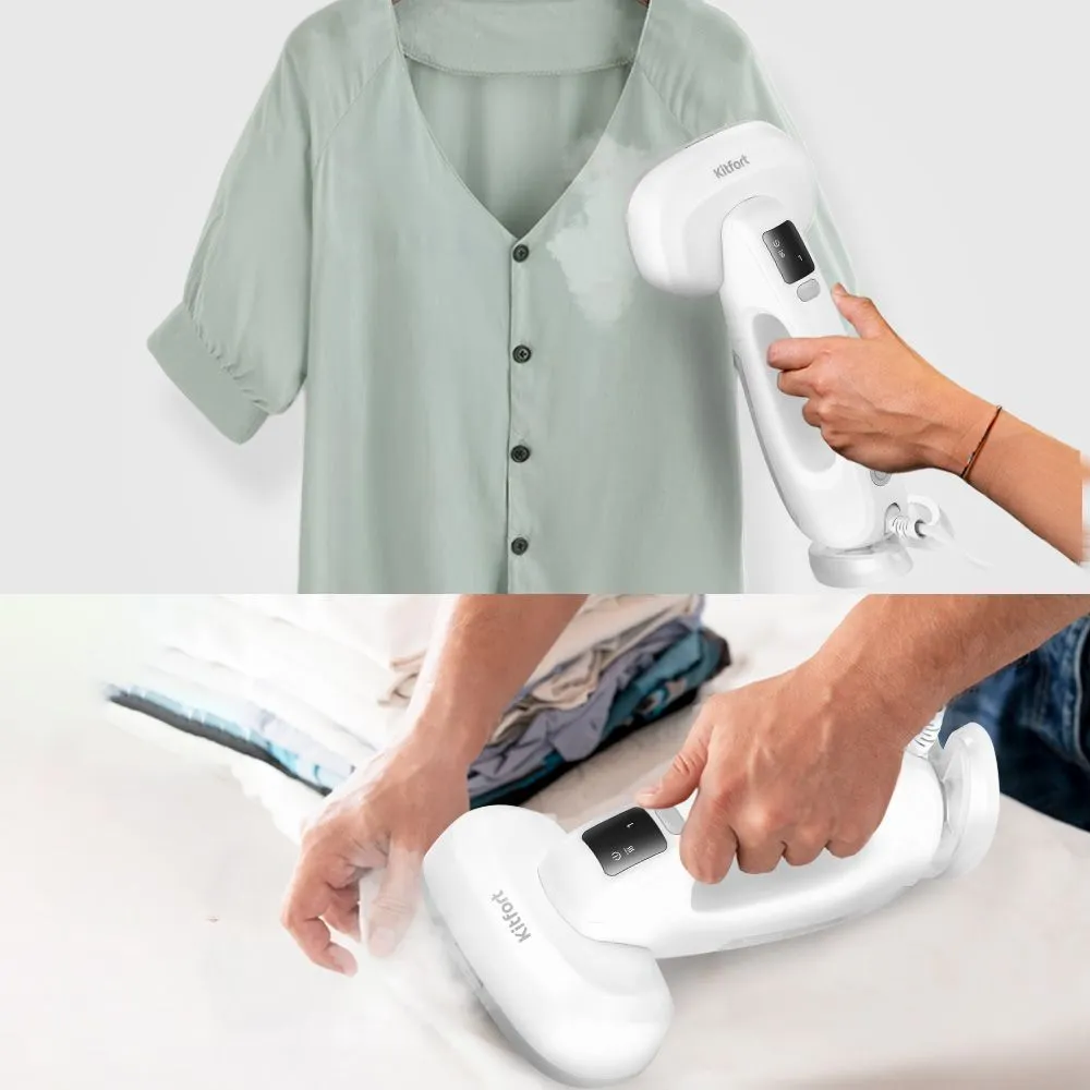 Ручной отпариватель КТ-9275 предназначен для разглаживания изделий из текстиля с помощью потока горячего пара. Ручной отпариватель приведёт в порядок вещи быстро и практически в любом месте без раскладывания гладильной доски.
