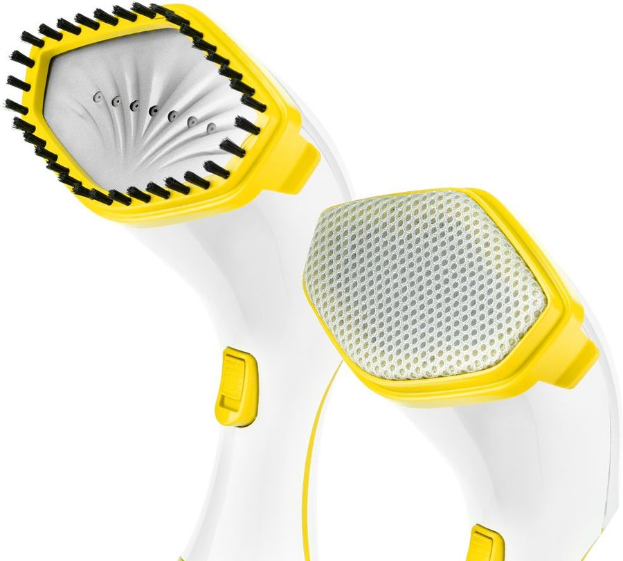 В комплекте с ручным отпаривателем идут 2 насадки. Ворсовая легко чистит загрязнённые поверхности, а также убирает шерсть домашних животных, волосы, ворс. Тканевая насадка необходима при работе с деликатными тканями.