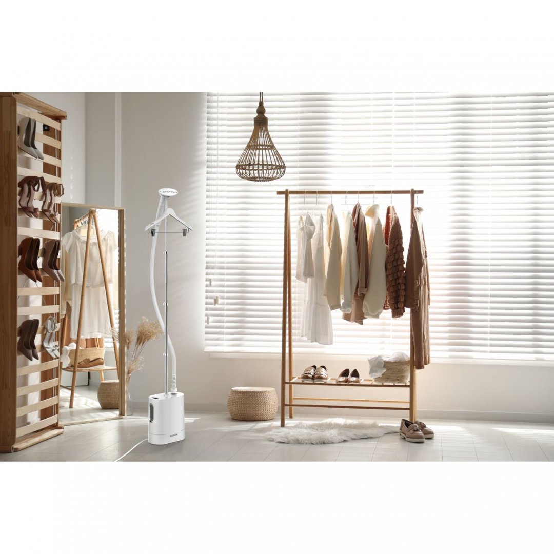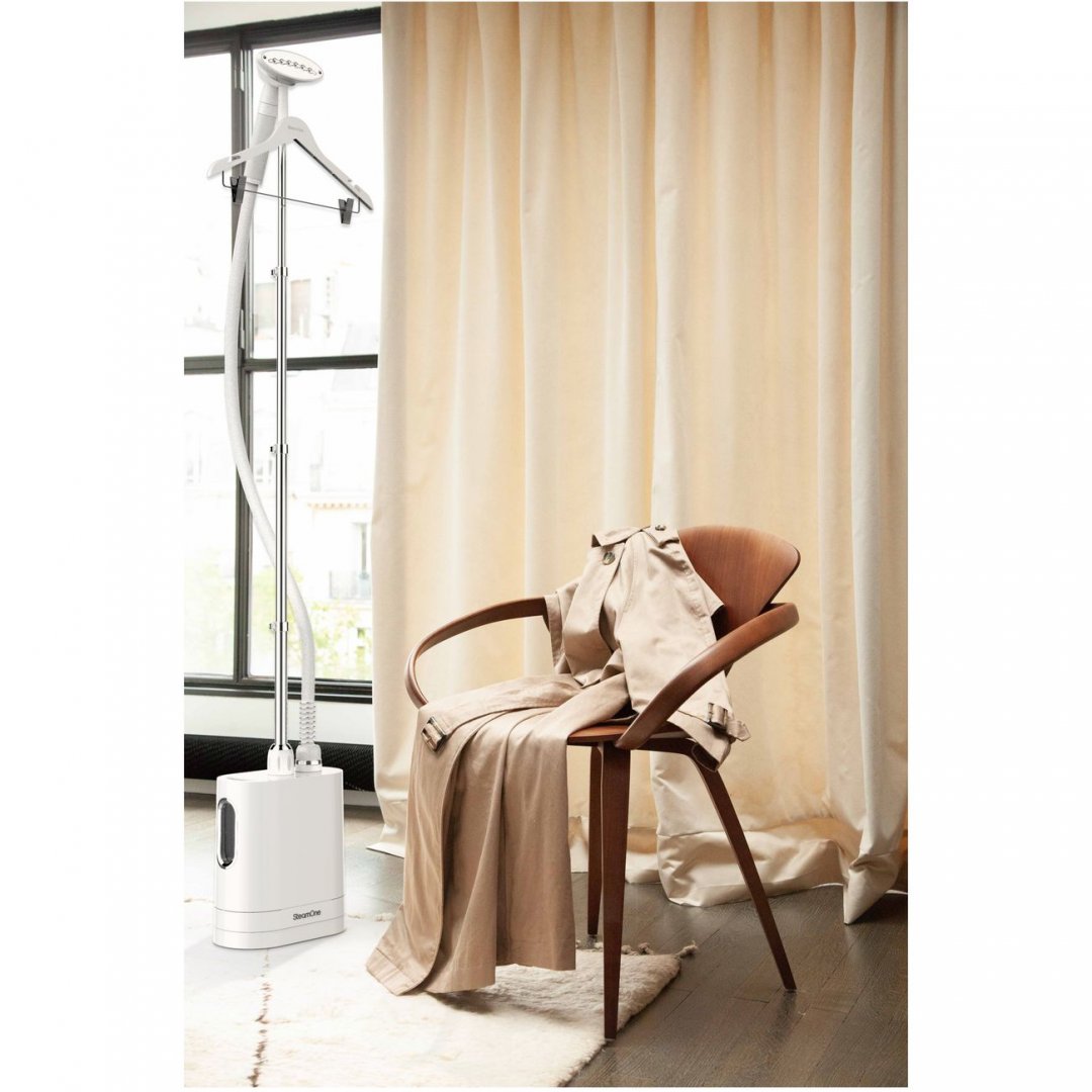 Вертикальный отпариватель Steamone EUH2020W - это модель напольного типа мощностью 1900 Вт, изготовленная из пластика, устойчивого к различным воздействиям. Для подачи пара используется телескопическая стойка, а также шланг длиной 1,58 м. Прибор функционирует от сети. Для подключения есть 2-метровый шнур.