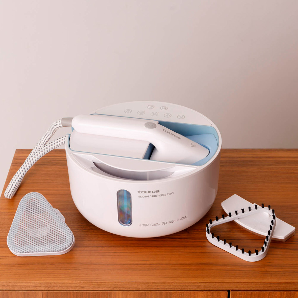 Принадлежности: грубая щетка, насадка для деликатных тканей, 2 фильтра против накипи