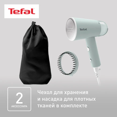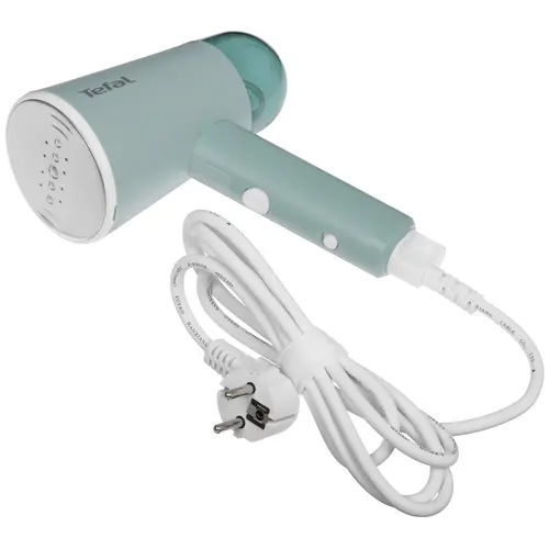 Встроенный резервуар вмещает 70 мл воды. Отпариватель Tefal Origin Travel DT1034E1 управляется с помощью кнопок на корпусе. У основания сетевого шнура есть отверстие для подвешивания прибора на крючок.