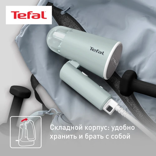 Отпариватель Tefal Origin Travel DT1034E1 со складной рукояткой не займет много места в сумке или чемодане во время поездок. Благодаря мощности 1200 Вт он готов к работе через 25 секунд после включения. Система постоянной подачи пара с интенсивностью 20 г/мин справляется с разглаживанием складок на плотных и деликатных тканях, дезинфицирует поверхности и устраняет неприятные запахи.