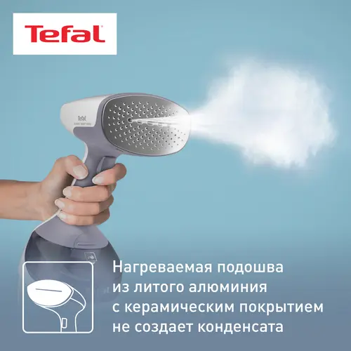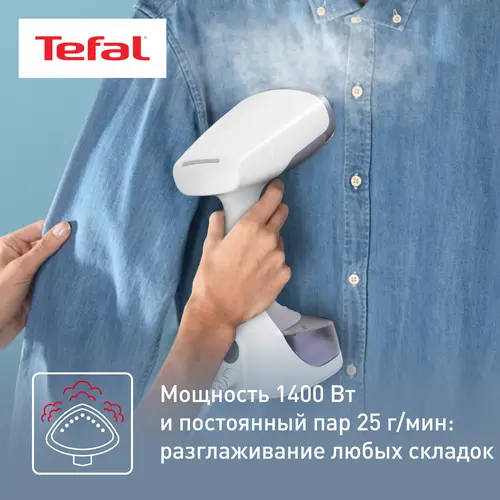 Отпариватель ручной Tefal Access Steam Easy DT7151E1 – удобное и компактное устройство серого цвета. Модель мощностью 1400 Вт нагревается в течение 15 сек, что позволяет быстро приступить к работе. Изделие используется для удаления складок на одежде, удобно для вертикального ухода за шторами или вещами на вешалках. Удобная ручка обеспечивает комфортную эксплуатацию без усталости. А крючок для двери в комплекте позволяет найти удобное место для использования устройства.