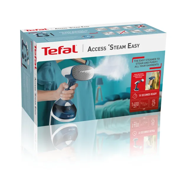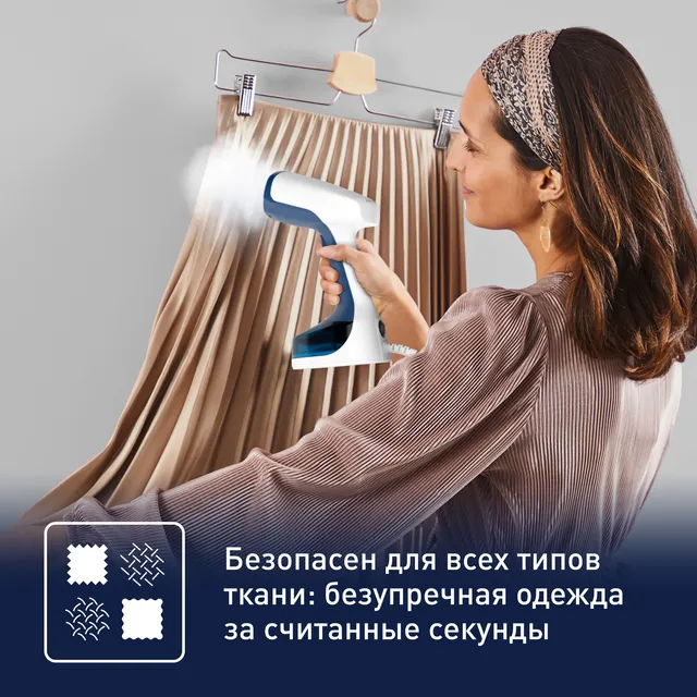 Отпариватель Access Steam Easy идеально подходит для быстрого и качественного ухода за вещами. Его мощности 1400 Вт и подачи пара 25 г/мин достаточно для эффективного разглаживания складок, позволяя одновременно освежать и дезинфицировать* одежду. Вы точно успеете вовремя: отпариватель готов к работе всего через 15 секунд после включения. Отпаривание, очистка и дезинфекция – обеспечьте комплексный уход за вещами всего в несколько движений.