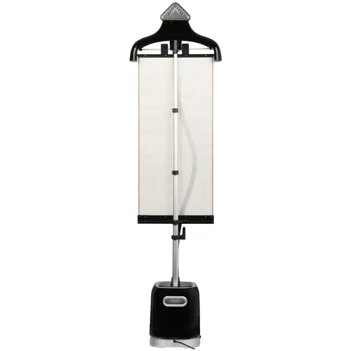 Отпариватель Tefal Pro Style IT3480E1 имеет 1.5-литровый бак, жидкость из которого нагревается за 45 сек. Доступ к 3 режимам работы открывается с помощью механической панели управления. Металлическую подошву утюжка отличает быстрый нагрев и устойчивость к образованию коррозии при регулярном воздействии влаги. Телескопический механизм стойки служит для выбора подходящей высоты.