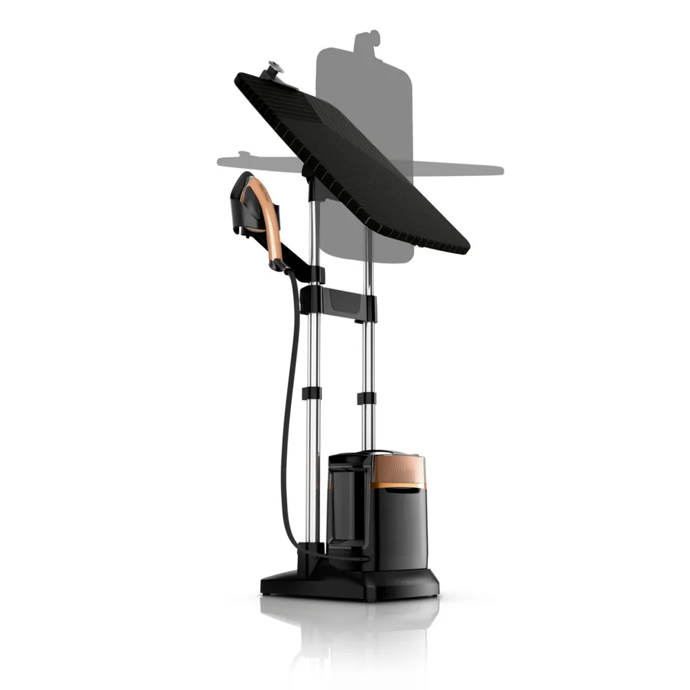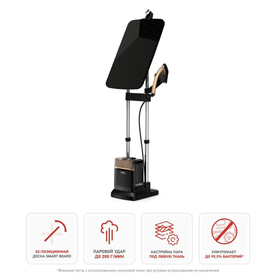 Устройство оснащено гладильной доской Smart Board, которая фиксируется в трёх положениях: горизонтально, вертикально и под углом в 30°. Даже вещи со сложным кроем, например, пиджаки или сорочки, вы сможете привести в порядок легко и быстро.